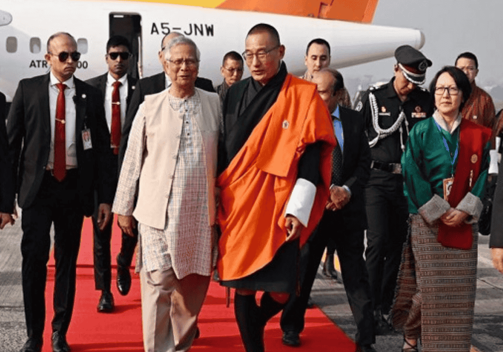 সকাল ৮টা ১৫ মিনিটে ড্রুকএয়ারের একটি ফ্লাইটে হযরত শাহজালাল আন্তর্জাতিক বিমানবন্দরে অবতরণের পর তাকে লাল গালিচা সংবর্ধনা দেওয়া হয়। ভিআইপি লাউঞ্জে পররাষ্ট্র উপদেষ্টা মো. তৌহিদ হোসেনের সঙ্গে সংক্ষিপ্ত বৈঠকে তিনি শুক্রবারের ভূমিকম্পে প্রাণহানি ও ক্ষয়ক্ষতির জন্য গভীর সমবেদনা জানান।এরপর তাকে ১৯ বার তোপধ্বনি ও ত্রিবাহিনীর একটি সুসজ্জিত গার্ড অব অনার প্রদান করা হয়।বিমানবন্দর থেকে তিনি