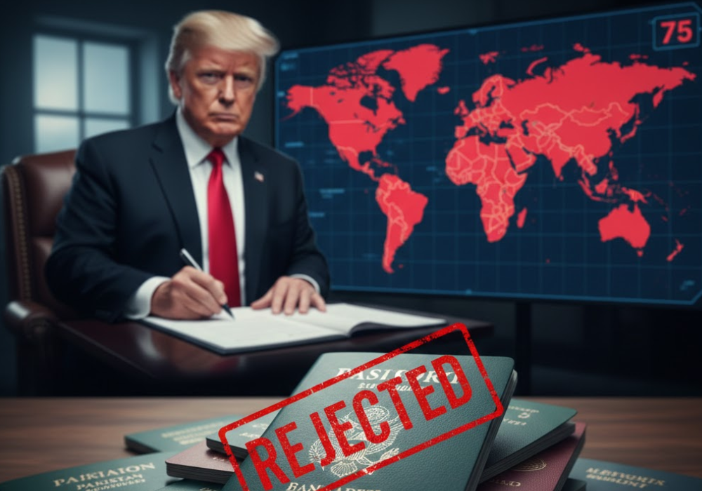 যুক্তরাষ্ট্রের নবনির্বাচিত প্রেসিডেন্ট ডোনাল্ড ট্রাম্পের কঠোর অভিবাসন নীতির অংশ হিসেবে বাংলাদেশসহ বিশ্বের ৭৫টি দেশের নাগরিকদের জন্য সব ধরনের ভিসা প্রদান বন্ধ করার প্রক্রিয়া শুরু হয়েছে। ওয়াশিংটন সূত্রের খবর অনুযায়ী, যেসব দেশ থেকে অবৈধ অভিবাসীর সংখ্যা বেশি কিংবা যেসব দেশ নিজ দেশের নাগরিকদের ফিরিয়ে নিতে অনীহা প্রকাশ করছে, তাদের বিরুদ্ধেই এই শাস্তিমূলক ব্যবস্থা নেওয়া হচ্ছে। মূলত