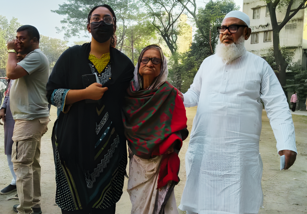 বয়সের ভারে শরীর নুয়ে পড়েছে, চোখেও আগের মতো জ্যোতি নেই, তবুও নাগরিক দায়িত্ব পালনে এতটুকু ভাটা পড়েনি ৯৯ বছর বয়সী জমিরুন নেছার। আজ সকালে রাজধানীর একটি ভোটকেন্দ্রে এক অনন্য দৃশ্যের অবতারণা হয়, যখন দেখা যায় ছোট নাতনির মেয়ের হাত ধরে ধীরে ধীরে কেন্দ্রের দিকে এগিয়ে আসছেন শতবর্ষী প্রায় এই বৃদ্ধা। ভোট প্রদান শেষে তার চোখে-মুখে