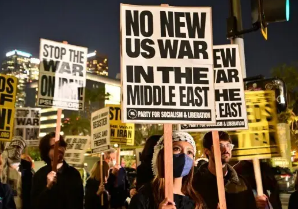ইরানের বিরুদ্ধে মার্কিন যুক্তরাষ্ট্র ও ইসরায়েলের সম্ভাব্য সামরিক অভিযানের প্রতিবাদে নিউ ইয়র্ক সিটির রাজপথে নেমেছেন হাজার হাজার মানুষ। আজ ২৩ মার্চ ২০২৬, সোমবার স্থানীয় সময় সকালে টাইমস স্কয়ার ও ম্যানহাটনের গুরুত্বপূর্ণ সড়কগুলোতে এই যুদ্ধবিরোধী বিক্ষোভ অনুষ্ঠিত হয়। বিভিন্ন শান্তিকামী সংগঠন, মানবাধিকার কর্মী এবং সাধারণ মার্কিন নাগরিকরা এই সমাবেশে অংশ নিয়ে মধ্যপ্রাচ্যে নতুন করে কোনো যুদ্ধ