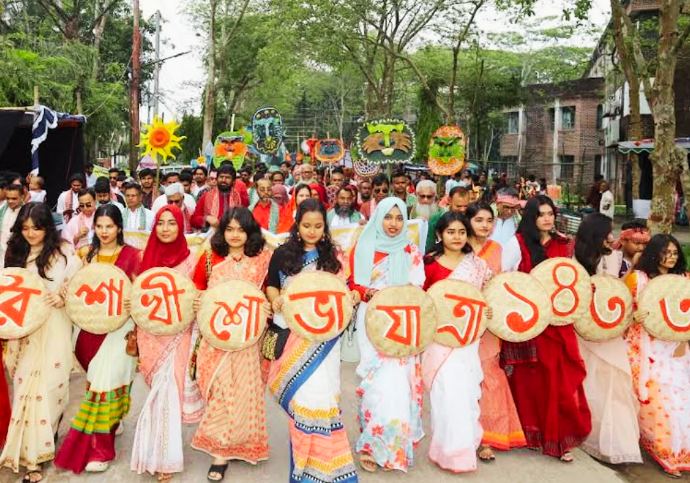 পুরানো বছরের সব জরাজীর্ণতা আর গ্লানি মুছে এক নতুন আগামীর প্রত্যয়ে আজ দেশজুড়ে উদযাপিত হচ্ছে পহেলা বৈশাখ, বাংলা নববর্ষ ১৪৩৩। ভোরের আলো ফুটতেই রমনা বটমূলে ছায়ানটের শিল্পীদের সুরের মূর্ছনায় শুরু হয় বর্ষবরণের মূল আনুষ্ঠানিকতা। এরপর ঢাকা বিশ্ববিদ্যালয়ের চারুকলা অনুষদ থেকে বের হওয়া বর্ণিল মঙ্গল শোভাযাত্রা অসাম্প্রদায়িক চেতনার বার্তা ছড়িয়ে দেয় রাজধানীজুড়ে। শুধু ঢাকা নয়, গ্রাম থেকে শহর— সর্বত্রই বৈশাখী মেলা, পান্তা-ইলিশের আয়োজন এবং লোকজ গানের আসরে মেতেছে সব বয়সের মানুষ। হালখাতার রঙিন মলাটে নতুন হিসাব খুলছেন ব্যবসায়ীরা, আর সাধারণ মানুষ মেতেছে উৎসবের আমেজে। কড়া নিরাপত্তা ব্যবস্থার মধ্যেও উৎসবের এই স্বতঃস্ফূর্ত অংশগ্রহণ প্রমাণ করে যে, পহেলা বৈশাখ বাঙালির জাতিসত্তার এক অবিচ্ছেদ্য অংশ, যা ধর্ম-বর্ণ নির্বিশেষে সবাইকে এক সূত্রে গেঁথেছে।